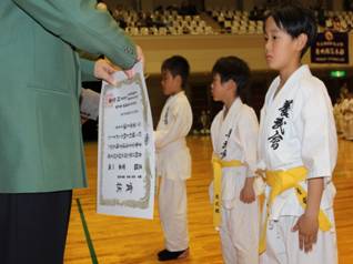 形の部 優勝 木許 魁人・佐藤 瑞生・中川 雄太 二位 阿部 龍星・中川 堅太・丸野 美紗希 三位 菜切 蓮 敢闘賞 有働 萌華・山内 菜々 古武道 新色 沙織 |